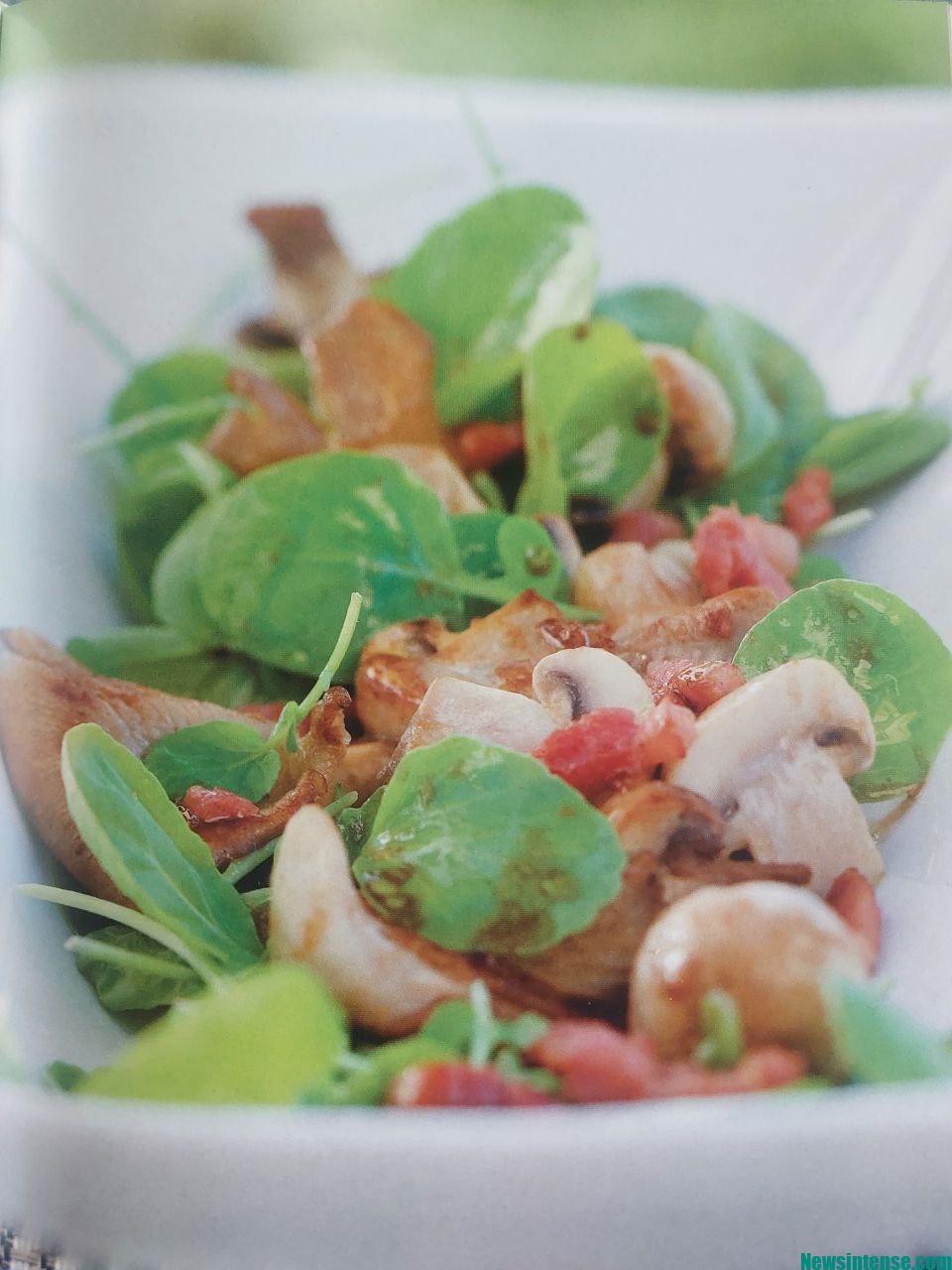 - Heat the oil in a pan and fry the pancetta for 3 minutes. Add the mushrooms and stew for 4-5 minutes.